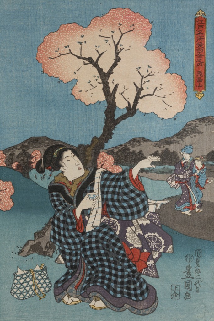 Kunisada Utagawa Toyokuni III Utagawa (1786 - 1865), Asukayama, de la série Lieux célèbres d’Edo associés à des poèmes de Hokku, vers 1842-1846, gravure sur bois en couleurs sur papier japon vergé. Photo : Julien Gremaud