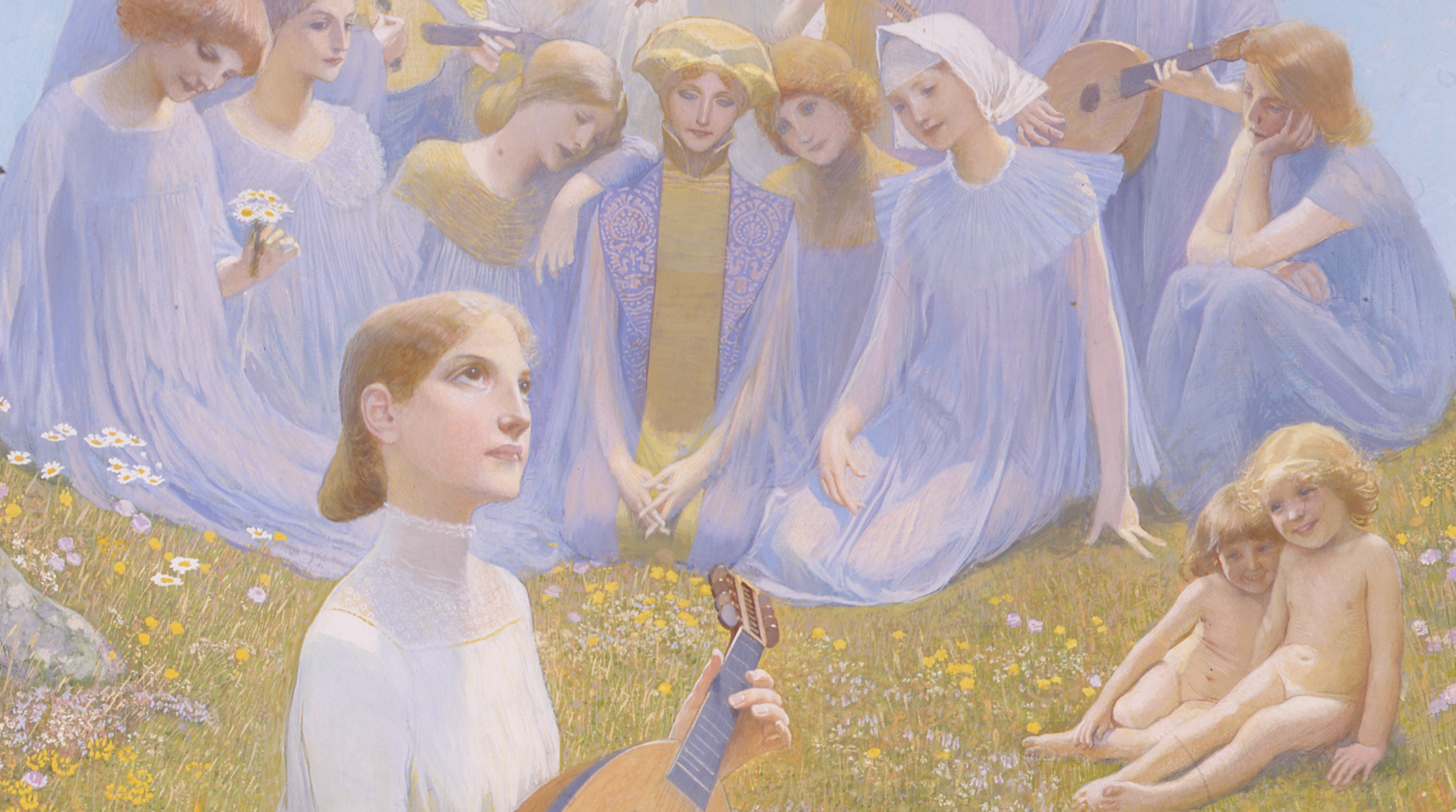 Un regard tourné vers le ciel, un chœur de musiciens, une prairie fleurie … Dans Sainte Cécile (1908), Léo-Paul Robert (Bienne, 1851 – Orvin, 1923) rend hommage à la Sainte patronne de la musique et des musiciens avec une ferveur toute personnelle. Une toile qui nous pousse à réfléchir sur l’iconographie religieuse et la grande foi que témoigne cet artiste de sa représentation.